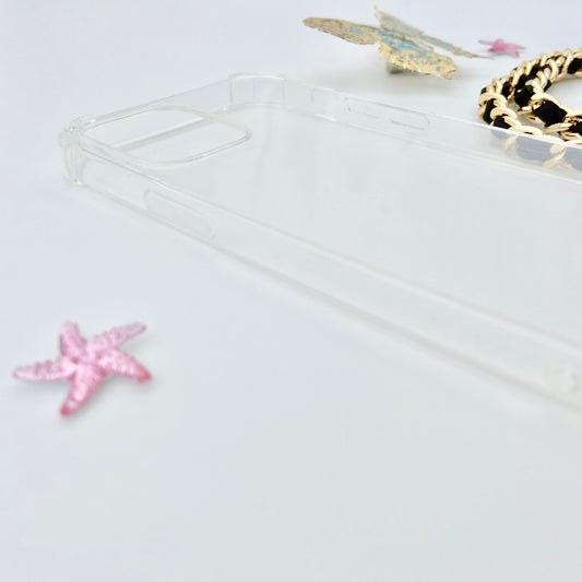 CLEAR PHONE CASE WITH GOLD CHAIN LANYARD