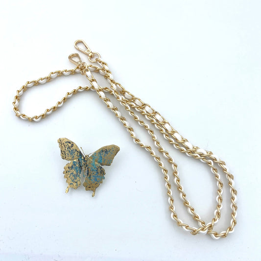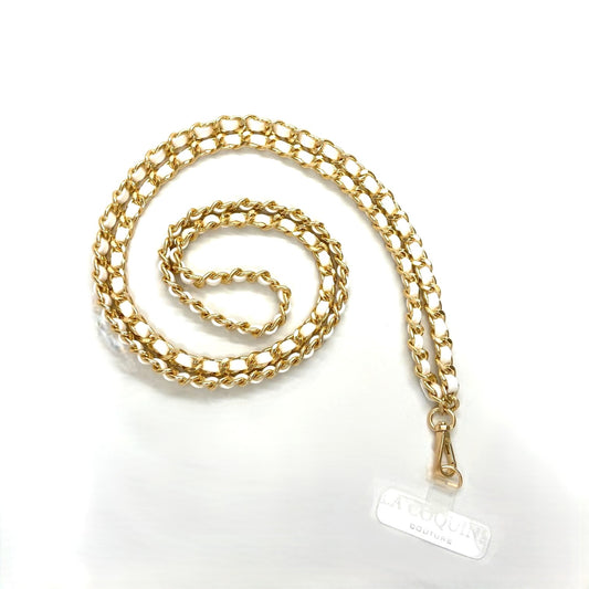 WHITE SMARTPHONE CASE WITH GOLD CHAIN LANYARD