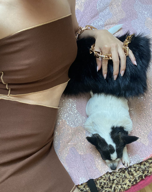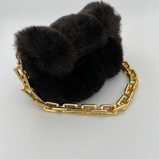 VEGAN FUR PURSE WITH CHUNKY CHAIN SLING