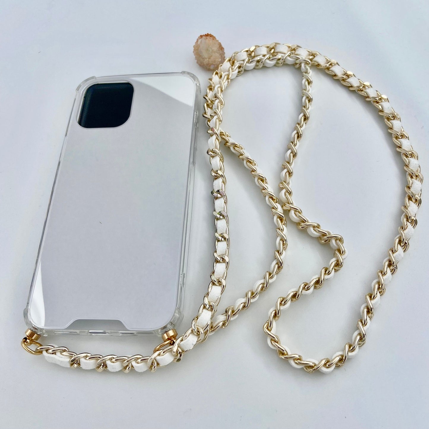 MIRROR PHONE CASE WITH GOLD CHAIN LANYARD